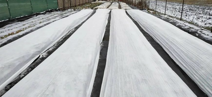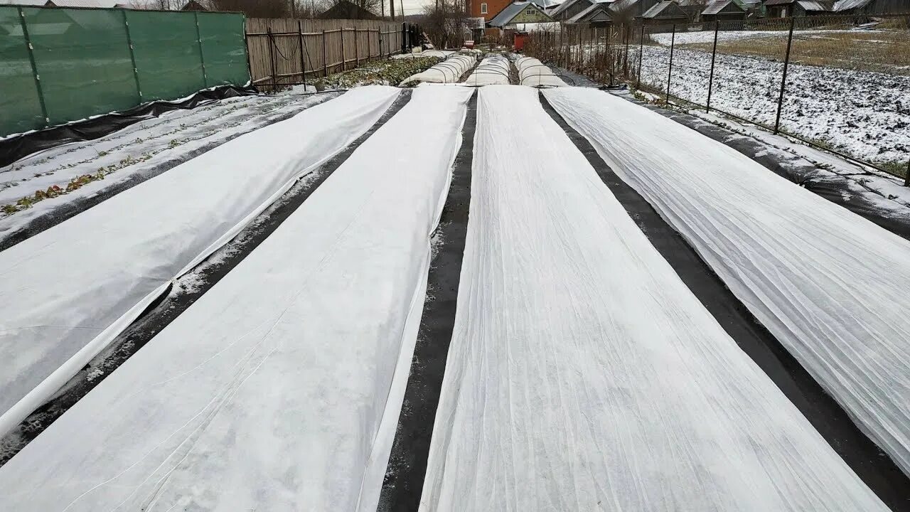 - Агроволокно (спанбонд, лутрасил) плотностью 30-60 г/кв.м: Оптимальный современный вариант. Материал пропускает воздух и влагу, предотвращая выпревание. Им можно просто накрыть грядку, закрепив края.